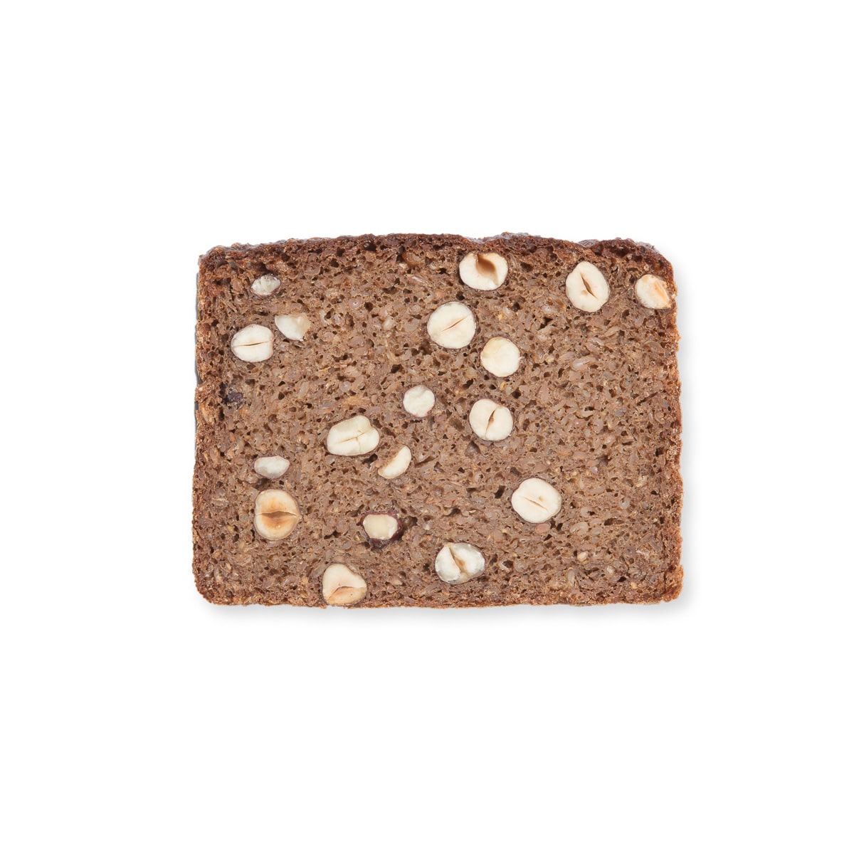 Roggenvollkornschrot, Dreistufen-Sauerteig (Roggenvollkornmehl, Wasser), Wasser, Haselnüsse (13,0%) , Weizenmehl Type 550, Gerstenmalz geröstet, Salz-jodfrei, Spuren anderer Allergene