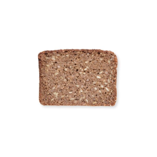 Roggenvollkornschrot, Dreistufen-Sauerteig (Roggenvollkornmehl, Wasser), Wasser, Sonnenblumenkerne (9,1%) , Weizenmehl Type 550, Gerstenmalz geröstet, Salz-jodfrei, Spuren anderer Allergene