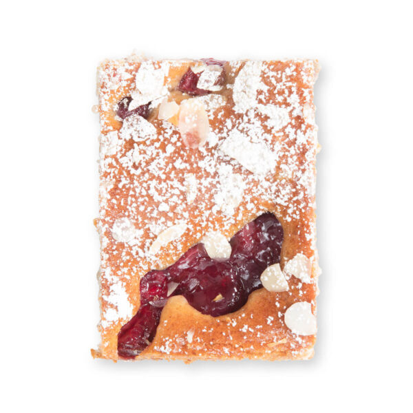 Sauerkirschen (25,3%) , Dinkelvollkornmehl, Vollei, Schmand, Rapsöl, Sonnenblumenkerne, Margarine (Palmfett, Wasser, Palmöl, Aroma), Zucker, Haferflocken, Dinkelmehl Type 630, Kochcreme (Maisstärke, Aroma, färbendes Lebensmittel: Karottenextrakt), Aprikosenmarmelade, Mandeln, Puderzucker, Vanillearoma, Maisstärke, Salz-jodfrei, Zimt