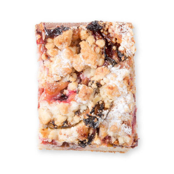 Pflaumen (41,9%) , Dinkelmehl Type 630, Zucker, Vollei, Butter, Rapsöl, Dinkelvollkornmehl, Bindemittel (Zucker, Mandeln, Weizenmehl, Palmfett, modifizierte Maisstärke, Hühnereiweißpulver, Aroma, Milchzucker, Milcheiweiß), Vanillearoma, Maisstärke, Salz-jodfrei
