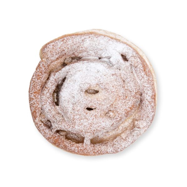 Weizenmehl Type 550, Apfelwürfel, Wasser, Milchzucker, Palmöl, Palmfett, Pflanzliche Fette (Sonnenblume, ganz gehärtet, Kokos), Sonnenblumenöl, Vollei, Zucker, Puderzucker, Hefe, Zimt, Maisquellmehl, jodiertes Speisesalz, natürliches Aroma,